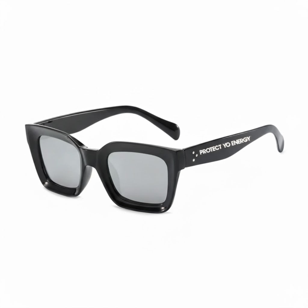 Designed to make a statement while protecting yo energy. These high-quality frames feature PYE branding on both temples and provide full UV protection for everyday wear. One size fits most.